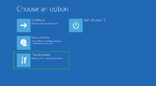 - While your Windows 10 system restarts, select Boot Option –> Troubleshoot –> Reset this PC –> Keep my files.